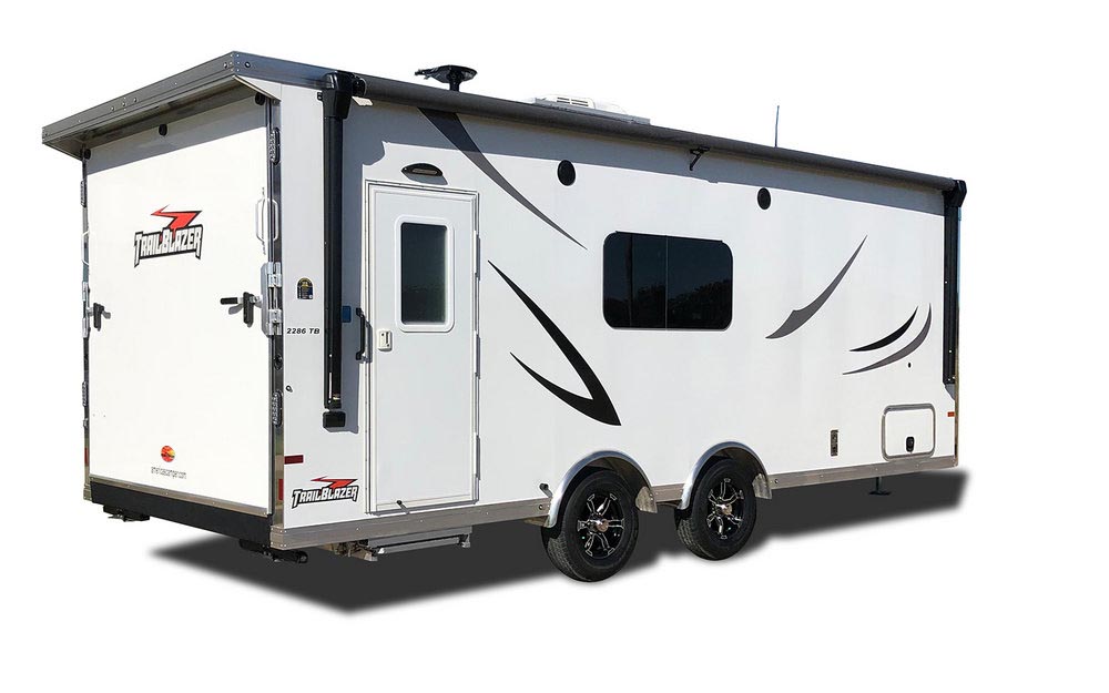 Sundowner Trailers has answered the demand for a well-built, towable bumper pull Toy Box with the exciting TrailBlazer. The TrailBlazer Toy Box series is perfectly sized, highly functional and comfortably priced. The TrailBlazer Bumper Pull Toy Box features an all-aluminum frame and chassis, an aluminum roof, a lower profile for easier towing and handling, easier access with a lower step in height, maximum storage, torsion axles for improved ride and more.