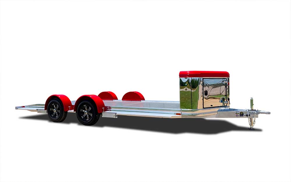 Sundowner Trailers added the most popular options to the Sundowner open Car Hauler and created the Ultra Series. While you showcase and safely haul your toys they are protected with a 3’ permanent enclosed storage compartment where your valuables can be stored under lock and key. A stainless nose, custom paint and polished bottom rail provide the eye appeal.